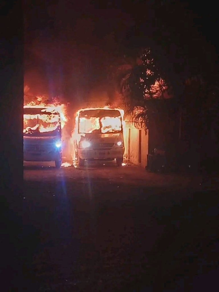 Durante la madrugada de este domingo, un fuerte incendio arrasó con parte de la bodega de autobuses “Maringos” en la Ranchería Reyes Hernández Segunda Sección, en el municipio de Comalcalco.